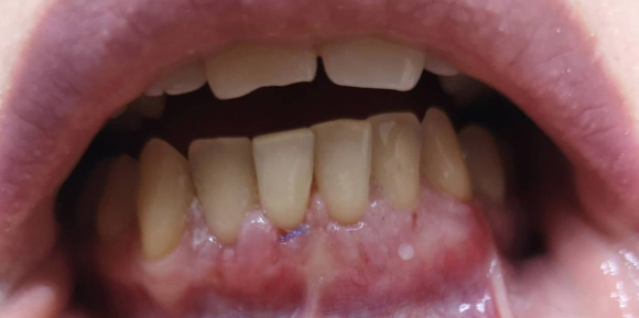 Была выполнена методика B2s - это костный блок с области бугра верхней челюсти, где изначально был зуб мудрости